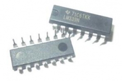 LM339(N)- 4-канальный компаратор для работы в бытовом диапазоне температур (0..+70°С). Выход - открытый коллектор.