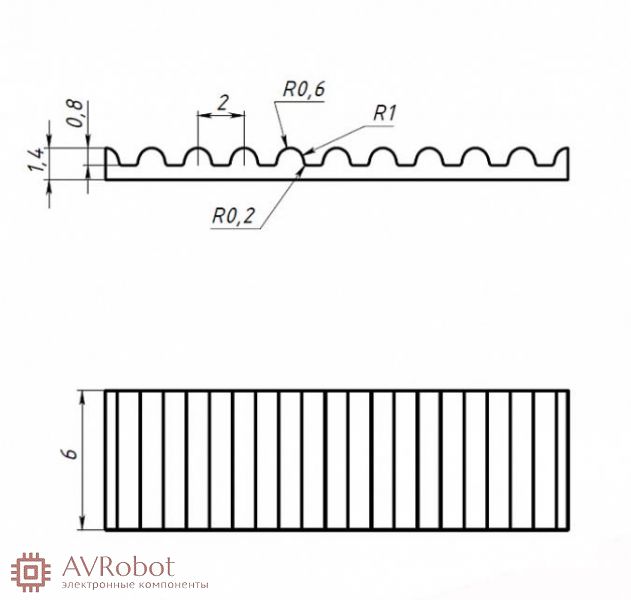 Зубчатый замкнутый ремень 200мм GT2-6mm для 3D-принтеров, длина окружности 200мм, ширина 6мм (шаг - 2мм, ширина зуба - 1мм)
