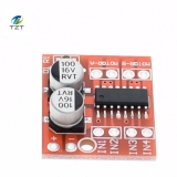 - Используется импортный оригинальный чип MX1508, имеющий МОП ключи с низким сопротивлением, минимальное тепловыделение ,позволяющее использовать драйвер без радиаторов теплоотвода, маленький размер, низкое энергопотребление, благодаря чему идеально подходит в портативных устройствах для питания от аккумулятора.