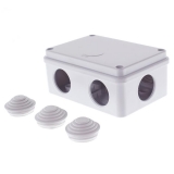 Коробка распределительная о/п на 6 выходов, размерами 120х80х50 мм имеет степень защиты IP55. Применяется для прокладки наружной проводки в производственных, общественных помещениях. Предназначена для использования с гофрированными (армированными) трубами, в которых размещаются силовые или слаботочные сети. Подключают трубы через специальные защитные сальники. Прикрепляют распределительные коробки на стены, потолки, лотки. Изготавливают из АБС пластика марки Экопласт.