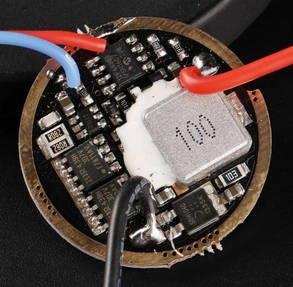 Светодиодный драйвер тока FX-30 для светодиодных фонариков типа XHP70, входное напряжение 6.0В - 8.4В выходной ток до 5А, диаметр подложки 30мм.
