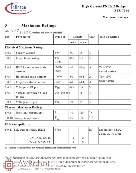BTS7960B представляет собой экономически оптимизированное решение для защищенных сильноточных ШИМ-приводов, занимающие очень мало места на плате с малым собственным потреблением.