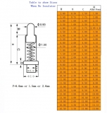 | Номер модели контакта | Высота над печатной платой "H" | Высота подвижного контакта "B" | Высота трубки "C" | Высота после нажатия "H1" | Диаметр контакта "F" | Высота контакта "Е" | Примечание |
