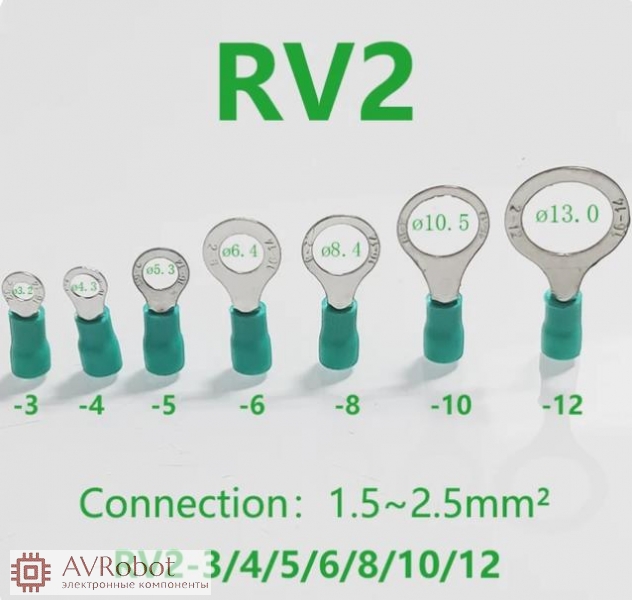 Обжимная клемма для проводов RV2-12, для провода 1,5-2.5 мм² на диаметр 12мм.