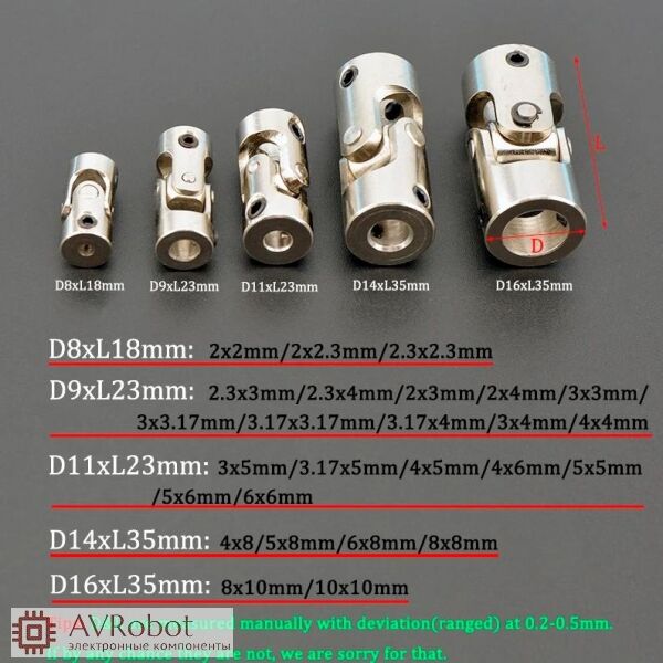 Карданное соединение металлическое D9xL23mm, 3 мм / 3 мм