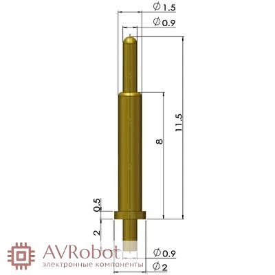 Пружинный контакт Pogo Pin Connector GA20-11535-0920 PGTH-11.5H 1A (длина 11.5мм, диаметр контакта 0.9мм)