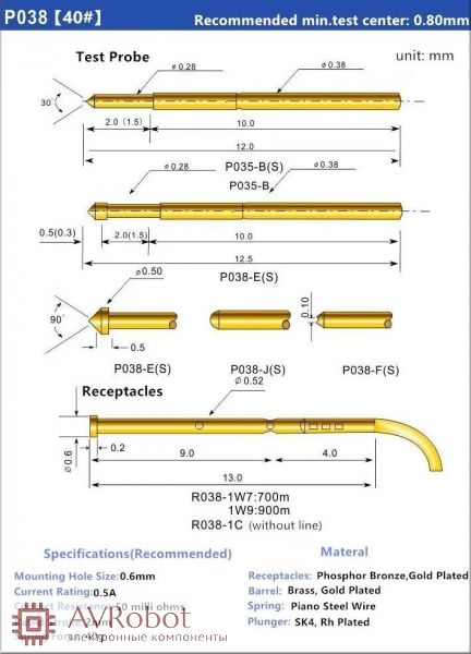 P038-J Dia 0.38mm 40g Spring Test Probe Pogo Pin