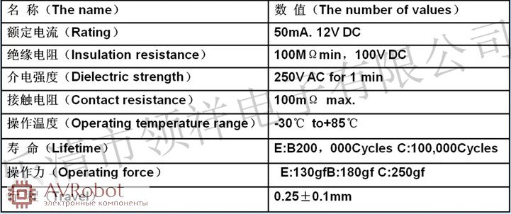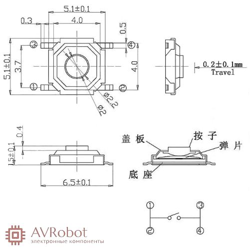 Кнопка тактовая SMD 5.2 * 5.2 * 3 мм (водонепроницаемая) TS-1252