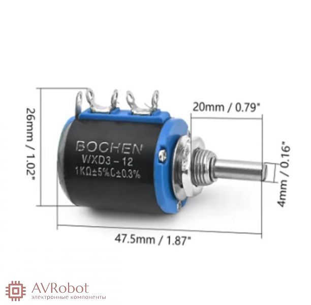 Проволочный многофункциональный многооборотный высокоточный потенциометр WXD3-12-1W 4.7 КОм ±5% C±0.3% (переменный резистор)