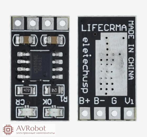 Защита от перезарядки и переразрядки, защита по току до 1А.