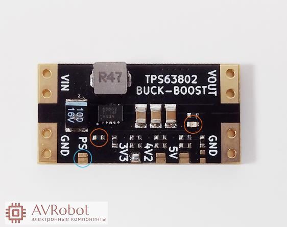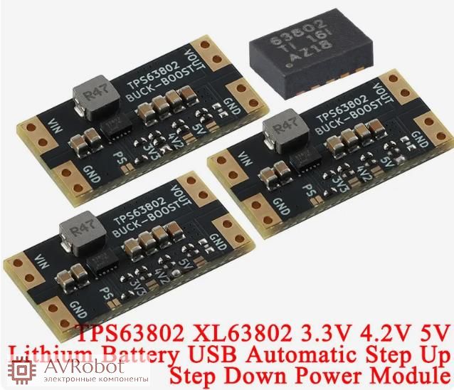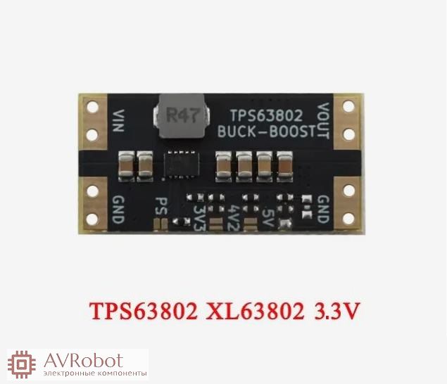 Модуль XL63802 со специальной схемой регулирования напряжения на ИМС TI TPS63802, с низкой пульсацией на выходе и стабильной производительностью. Частота переключения превышает 1,4 МГц, а выходной ток может достигать 1.2А. Модуль имеет предустановку на фиксированное напряжение (3.3В), но может перемычками выбрать другое напряжение на выходе: 3.3В, 4.2В и 5В, которые подходят для различных ситуаций, - например для микроконтроллеров 3.3В или 5В для использования с литиевыми аккумуляторами и/или USB для питания. Модуль может работать в двух режимах на выбор пользователей: обычный рабочий режим и энергосберегающий режим. Модуль представляет собой типичную структуру BUCK-BOOST - то есть повышения или понижения напряжения, в зависимости от входного напряжения и требуемого выходного напряжения. Диапазон входного напряжения 1.3В - 5.5 В (требуется выше 1.8 В для запуска) и выходным током более 1 А, отвечающие потребностям в питании различных моделей, таких как STM32, ESP32, микроконтроллер 51 и т. д. Плата оснащена красным светодиодным индикатороми выхода и поддерживает режим энергосбережения для увеличения срока службы батареи входных устройств, таких как батареи (для энергосбережения - замкнуть перемычку PS).