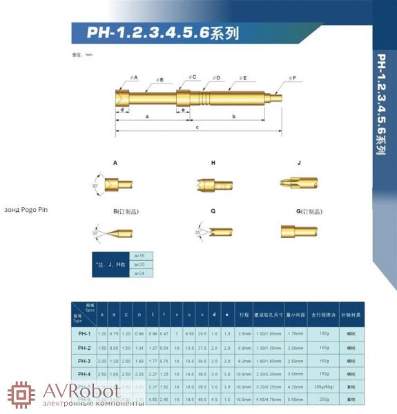Пружинный контакт-зонд проходной PH-5A, (длина 38мм, диаметр контакта 3.5мм, давление пружины 200г)