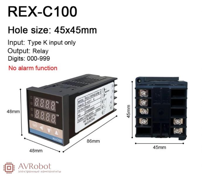 Мини двойной цифровой регулятор температуры REX-C100 FK02-M*DN, с термопарой типа K (0° ~ +400° C) с релейным выходом 250В 3А. Может использоваться с различными типами термопар и термоэлементов для контроля температуры в диапазоне от -199,9° до +1769°С.