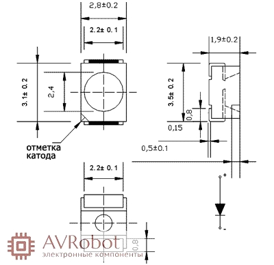 Светодиод SMD 1210, 3528, желтый, 120" 500мкд (Ultra Yellow)