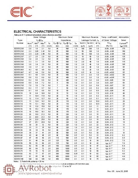 Номинальное напряжение стабилизации при токе стабилизации 5мА, +-5%, В: 5,1
