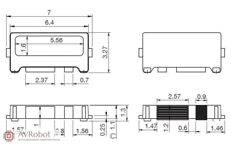 Размер: 1.3 мм х 7.0 мм x 3.2 мм