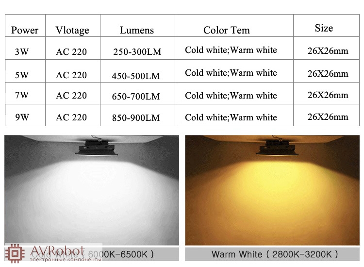 Удобная модель мощного 9-ваттного COB-светодиода с равномерным теплым светом, и питанием 220-240В AC, не требующий дополнительных преобразователей, все-в-одном. Удобен для прожекторов, потолочных и иных светильников. Используется оригинальная интеллектуальная схема контроля тока светодиодов.