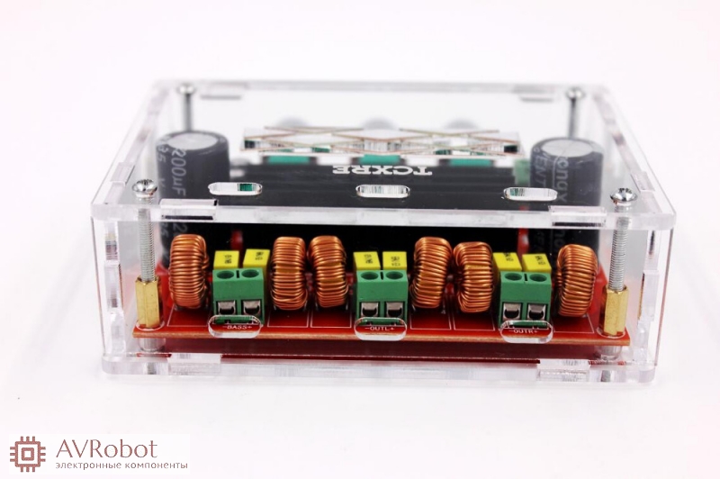 Корпус пластиковый для компактного готового усилителя 2.1 класса D 2 х TPA3116 2 х 50Вт + 100Вт subwoofer. Цвет прозрачный. Материал - пластик. Вес ок. 100 грамм. Размер корпуса 110*82*35мм.