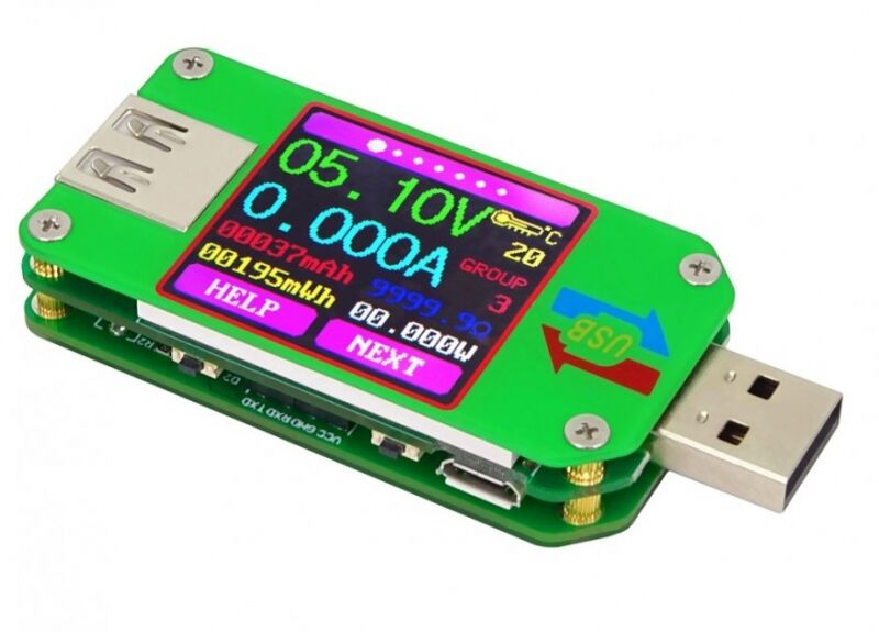 - Электронный USB мини-тестер с цветным дисплеем, с bluetooth-модулем, дополнительным разъемом microUSB, поддержкой спецификации QC2.0 и QC3.0 (Quick Charge 2.0 и 3.0), с диапазоном измерений напряжения от 4,50 В до 24,00 В (постоянное напряжение) и тока от 0,001 А до 3,000 А, емкости от 0 мА/ч до 99999 мА/ч - 99,99 А/ч, с функциями защиты от перенапряжения, от пониженного напряжения, защита по току, по температуре.