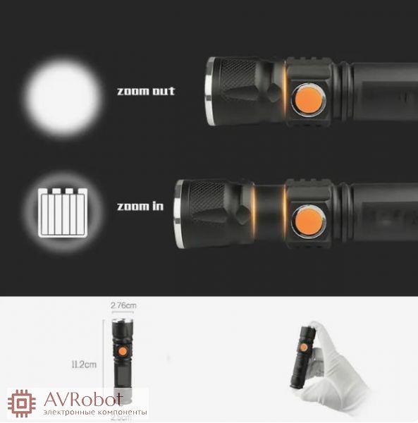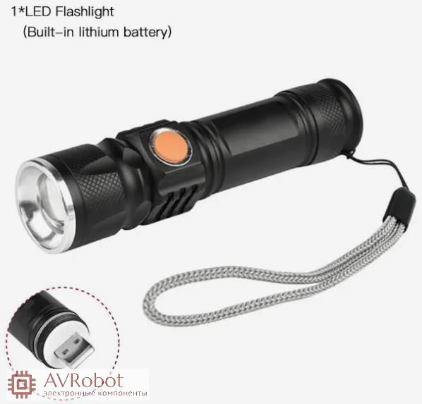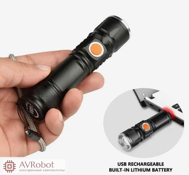 Удобный в использовании фонарик с режимом зарядки от USB, вы можете зарядить его от любого устройства с выходом USB, например: ноутбук, компьютер, powerbank и т.д.