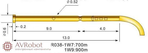 Гнездо (гильза) R038-1w7 для пружинного контакт-зонда P038-J, (13мм, сечение входа 0.6мм, длина контакта 9мм, диаметр 0,52мм)