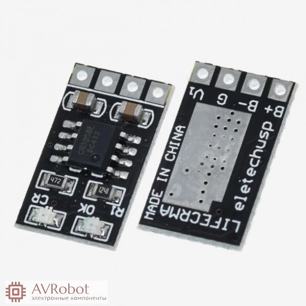 Зарядное устройство для LiFePo4 аккумуляторов 3.2В/3.6В 1А на CN3058E, напряжение полной зарядки 3.6В, вход 3.8 - 6.0В