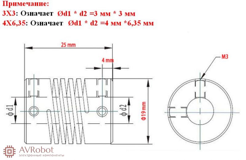 Гибкая соединительная муфта D19L25 4x10, размер 4*8*25мм, алюминий, диаметр 19мм, на вал 4мм / 10мм.